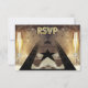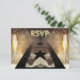 This design features a fancy gold background with a filmstrip and stars fading into the horizon. A pair of champagne glasses with decorative ribbon complete the look. Shiny gold text reads: "RSVP" at the horizon of the filmstrip. The reverse side has a response fill in template for your guests with customizable text for you to add your response due date. There is additional customizable text for you to add your meal selection information and your website or if you prefer, delete these fields using the customize it button! We also have invitations, reception cards, save the date postcards and a host of other accessories and papers to match too!