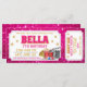 Special Premiere Event! Invite everyone to attend the greatest movie birthday party with our movie ticket invitation templates. This movie ticket birthday invitations features pinkglitter background with popcorn, 3D glasses, and other theater items on a modern style admit one ticket design.