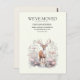 "We've moved" change of address / moving announcement postcard with the painting of a deer with large antlers in the forest.