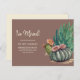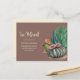 Botanical moving announcement/change of address card with desert cacti on a brown background.