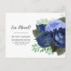 Elegant, vintage navy blue and dusty blue flowers/roses on white "I've moved" change of address / moving announcement postcard. Contact us for help with customization or to request matching products.