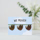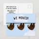 Creative moving announcement card featuring three cartoon sloths and funny line.