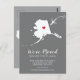 Modern moving announcement featuring the state of ALASKA , with a red heart & airplane set on a gray background. The background color can be changed easily by clicking personalize and then click to customize further to view our color picker. From there you can also move the airplane & heart! Contact our shop if you require help or need another state.