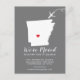 Modern moving announcement featuring the state of ARKANSAS, with a red heart & airplane set on a gray background. The background color can be changed easily by clicking personalize and then click to customize further to view our color picker. From there you can also move the airplane & heart! Contact our shop if you require help or need another state.