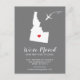Modern moving announcement featuring the state of IDAHO, with a red heart & airplane set on a gray background. The background color can be changed easily by clicking personalize and then click to customize further to view our color picker. From there you can also move the airplane & heart! Contact our shop if you require help or need another state.
