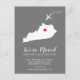 Modern moving announcement featuring the state of KENTUCKY, with a red heart & airplane set on a gray background. The background color can be changed easily by clicking personalize and then click to customize further to view our color picker. From there you can also move the airplane & heart! Contact our shop if you require help or need another state.
