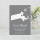 Modern moving announcement featuring the state of Massachusetts with a red heart & airplane set on a gray background. The background color can be changed easily by clicking personalize and then click to customize further to view our color picker. From there you can also move the airplane & heart! Contact our shop if you require help or need another state.