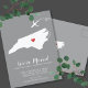 Modern moving announcement featuring the state of South Carolina, with a red heart & airplane set on a gray background. The background color can be changed easily by clicking personalize and then click to customize further to view our color picker. From there you can also move the airplane & heart! Contact our shop if you require help or need another state.
