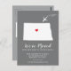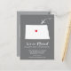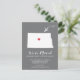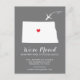 Modern moving announcement featuring the state of NORTH DAKOTA, with a red heart & airplane set on a gray background. The background color can be changed easily by clicking personalize and then click to customize further to view our color picker. From there you can also move the airplane & heart! Contact our shop if you require help or need another state.