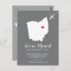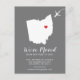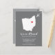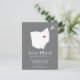 Modern moving announcement featuring the state of OHIO, with a red heart & airplane set on a gray background. The background color can be changed easily by clicking personalize and then click to customize further to view our color picker. From there you can also move the airplane & heart! Contact our shop if you require help or need another state.