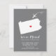 Modern moving announcement featuring the state of Pennsylvania with a red heart & airplane set on a gray background. The background color can be changed easily by clicking personalize and then click to customize further to view our color picker. From there you can also move the airplane & heart! Contact our shop if you require help or need another state.