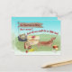 Moving Brown Dachshund Dog Stuff Our New Home Postcard is funny and the perfect easy way to let all of your friends and family know where you are. The design features a banner flag for your name and your Brown Dachshund 's name. The announcement comes across loud and clear-Have moved! just underneath the flag. Your Brown Dachshund announces that all of their stuff fit in one box, including his favorite bone, ball, red kong and yes, even his rubber chicken. All of this is set on grassy green and sky blue watercolor background. ALL OF THE TEXT on the front and back of this postcard is editable. Just click the PERSONALIZE OPTION and make it your own. You will find this cute Cute Brown Dachshund moving announcement post card along with tons of other breeds in our FUNNY DOG MOVING ANNOUNCEMENT POSTCARD collection Brown Dachshund in our store. We have more than 60 breeds, but if you don't find yours, message us and we will make it happen. All this designed by stationary designer Nancy Lambert, who can speak from experience about moving with dogs.
