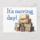 The bold headline "It's Moving Day!" is prominently displayed in an elegant yet playful font, perfectly capturing the joy and anticipation of a fresh start. The back offers ample space for a personalized message, ideal for real estate agents helping clients celebrate their next chapter or individuals marking this milestone in style, this postcard is a thoughtful and artistic way to spread the news.