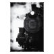 This black and white photograph of a steam locomotive is sure to get any rail enthusiast excited!