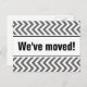 Moving postcards with tire tracks print. Custom moving text; We have moved! Add your new address on the back. Modern chevron moving cards for home and business.