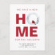 Modern and simple nature-inspired Christmas holiday moving announcement postcard with the word "HOME" in large red block typography with the "O" depicted by a watercolor illustration of snowy pine trees and a red cardinal bird perched inside. Customize "We Have a New Home For The Holidays" in simple red typography and add your name and new address underneath. On the reverse side customize your moving announcement and Christmas and New Year greeting in more detail, and include telephone numbers and email addresses if desired.
