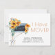 Moving announcement featuring a watercolor mailbox adorned with rustic sunflowers and eucalyptus with your new house, apartment or condo number on the mailbox. All text is editable to customize as desired (the sample shows I HAVE MOVED but you can change to WE'VE MOVED, etc.). ASSISTANCE: For help with design modification or personalization, color change, resizing, transferring the design to another product or if you would like coordinating items, contact the designer BEFORE ORDERING via the Zazzle Chat MESSAGE tab below or email makeitaboutyoustore@gmail.com.