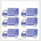 Six blue and white moving trucks announce 'We Have Moved". You can change the display text to your new address.