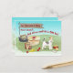 Moving Wire Haired Fox Terrier Dog Stuff Our New Home Postcard is funny and the perfect easy way to let all of your friends and family know where you are. The design features a banner flag for your name and your cute Wire Haired Fox Terrier's name. The announcement comes across loud and clear-Have moved! just underneath the flag. Your Wire Haired Fox Terrier announces that all of their stuff fit in one box, including his favorite bone, ball, red kong and yes, even his rubber chicken. All of this is set on grassy green and sky blue watercolor background. ALL OF THE TEXT on the front and back of this postcard is editable. Just click the PERSONALIZE OPTION and make it your own. You will find this cute Wire Haired Fox Terrier moving announcement post card along with tons of other breeds in our FUNNY DOG MOVING ANNOUNCEMENT POSTCARD collection in our store. We have more than 60 breeds, but if you don't find yours, message us and we will make it happen. All this designed by stationary designer Nancy Lambert, who can speak from experience about moving with dogs.