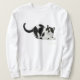 Original fine art design of a happy black and white tuxedo cat named Moxie by designer Carolyn McFann of Two Purring Cats Studio on a customizable sweatshirt for feline fans.