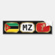 Bumper sticker displaying an attractive combination of the Mozambican flag, map and 2 letter country code.