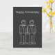 Mr and Mr Happy Anniversary .. two grooms greetings card with two doodle grooms in white on a faux chalkboard black background .. gay wedding anniversary congratulations designer gay cards from Ricaso