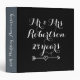 Personalized Mr and Mrs 25th wedding anniversary photo album binder. Elegant wedding day gift idea for married couple, husband and wife or newly weds. Customizable number of years like 1, 5, 10, 25, 40 etc. Personalizable colors ie black and white. Vintage calligraphy handwriting typography design with little love heart arrow. Add your own surname.