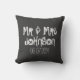 Custom Mr and Mrs black chalkboard wedding throw pillow. Personalized black chalk board pillow cushions for sofa or bed. Fun design with name of newly wed couple. Cute home decor personalized for bride and groom / husband and wife. Wedding presents for newlyweds.