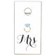 This corn hole set features sides for both the bride’s and groom’s, Mr and Mrs, teams in black and white. The perfect game to play at your backyard wedding reception or engagement party!