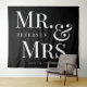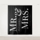 Elegant black and white trendy bold typography wedding Mr. and Mrs. name personalized photo booth backdrop.