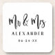 A chic Mr and Mrs beverage coaster featuring bold brushed black script with the couple's last name monogram and wedding date. The clean white background lets the expressive hand-lettered typography take center stage. A perfect personalized gift for newlyweds, wedding receptions, or anniversaries. All text is fully customizable.