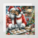 Personalized Christmas card. Sweet vintage Mr and Mrs Santa Claus (African-American) baking cookies in the kitchen. Cute ai art that gives you that nostalgic Christmas vibe.