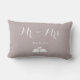 Mr. and Mrs. custom elegant grey and white wedding pillows with white swans and customizable text