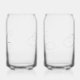 Modern calligraphy script Mr. & Mrs. name and established date personalized beer can glass drinkware set.