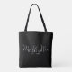 Featuring modern, elegant typography, this chic black-and-white tote bag can be personalized with your name and special date. Designed by Thisisnotme©
