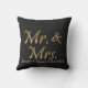 Mr and Mrs Gold script black burlap Wedding Throw Pillow