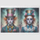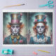 Double design, maximum size 15x20 for each image, choosing the 20x30 sheet. A fun and stylish design inspired by the Mad Hatter from Alice in Wonderland. Bright, vibrant colors like pink, blue, and yellow blend harmoniously, creating a playful yet elegant effect. Perfect for tissue paper for decoupage, it adds a touch of whimsy and originality to any project.