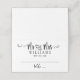Modern Mr and Mrs wedding escort cards feature a modern black and white color scheme with bold and playful handwritten calligraphy script typography with stylish scroll details. Personalize the casual yet elegant custom monogram text for your wedding day. Includes space to write a guest name(s) and table number.