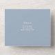 This all-in-one minimalist wedding invitation features elegant typography on a dusty blue background. The invitation includes a perforated RSVP card with your wedding website QR code. Designed by Thisisnotme©