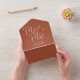 This all-in-one minimalist wedding invitation features elegant typography on a terracotta background. The invitation includes a perforated RSVP card with your wedding website QR code. Designed by Thisisnotme©