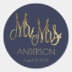 Mr. and Mrs. Navy Blue Faux Gold Foil Typography Classic Round Sticker