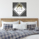 Mr. And Mrs. Newlyweds Beach Wedding Personalized Canvas Print is designed with customizable grey background. It has a pretty green palm tree on the center of white and grey diamond shape bordered frame. The text is "Mr. & Mrs." in trendy skinny lettering. Newlywed's last name is in calligraphy script lettering. The established year is below the name. Makes a great gift idea for a couple just married!