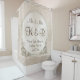 Mr and Mrs unique wedding gift ideas. Personalized Shower Curtain with subtle swirls and platinum accent circle framing off YOUR TEXT. Change Mr. and Mrs. To Your Text and Type in the Couple's MONOGRAM and Your Special Wedding message to the couple. DELETE any text. You can even change the Tauoe Champagne Color shade a bit or call Linda to change it for you. Call Linda: 239-949-9090