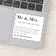 Give your wedding or anniversary gifts a warmer, more personal touch with this customizable Mr. & Mrs. definition sticker. The clean dictionary-style design works beautifully on all kinds of gift-wrapping. You can rewrite the definition however you like — add a sweet note, a funny line, or something meaningful to the couple — and include their names underneath to make it feel extra special.