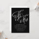 Plain white envelopes are included with paper invitations and will come to fit the invitation size you select. If you don’t need the envelopes, you may choose to not receive them by selecting the dropdown below "Envelopes" and choosing "None." If you’d like to have a design on your envelopes, you can browse all of these available envelopes to find the design that complements your Mr And Mrs Rustic Calligraphy Black Wedding Invitation.