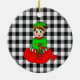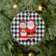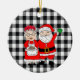 Mr and Mrs Santa Claus and Elf Buffalo Plaid Ceramic Ornament