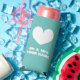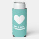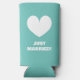 Mr and Mrs seltzer can coolers for wedding couple. Teal blue or custom color. Personalize with your own names and quote. Modern design with custom color love heart icon. Also great for engagement party.