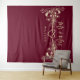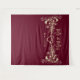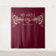 Elegant, boho, burgundy Mr and Mrs wedding backdrop with gold rope heart and gilded floral lace.
