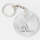 Mr and Mrs | White Marble Modern Script Wedding Keychain