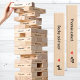 A giant topple tower game set will keep your wedding guests entertained and will also serve as a lovely keepsake. On one side, Mr. Groom asked THE question. On the other side Mrs. Bride said yes to THE question. TThe question isn't mentioned, but what could it be? Exactly. All in classic Comic Sans style.